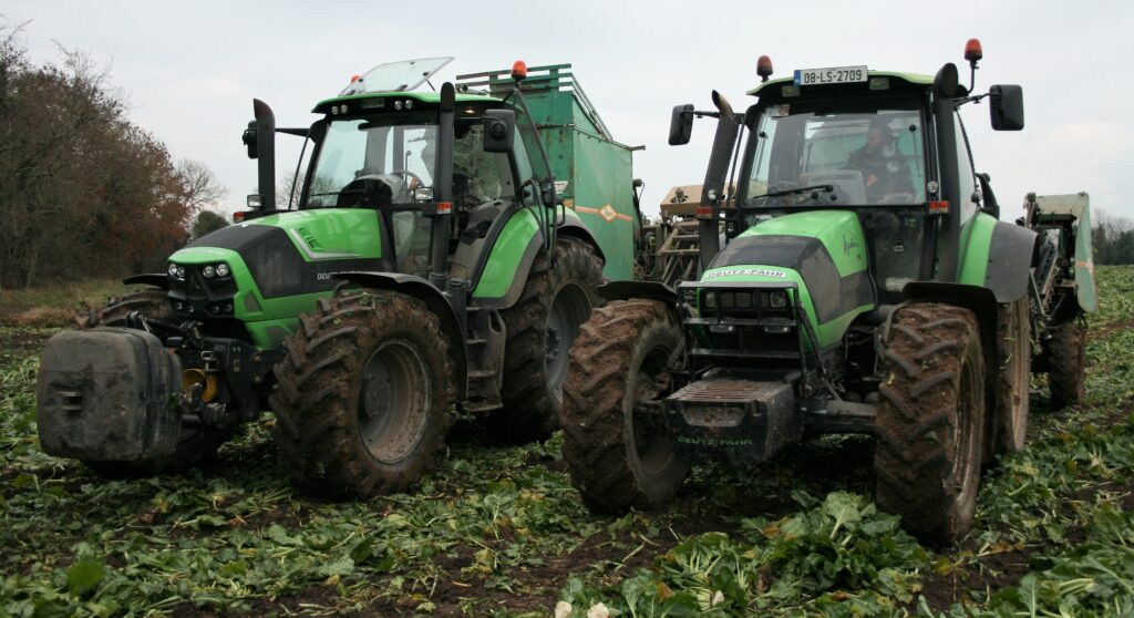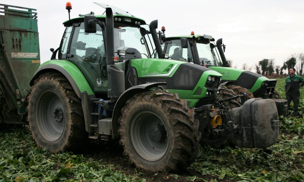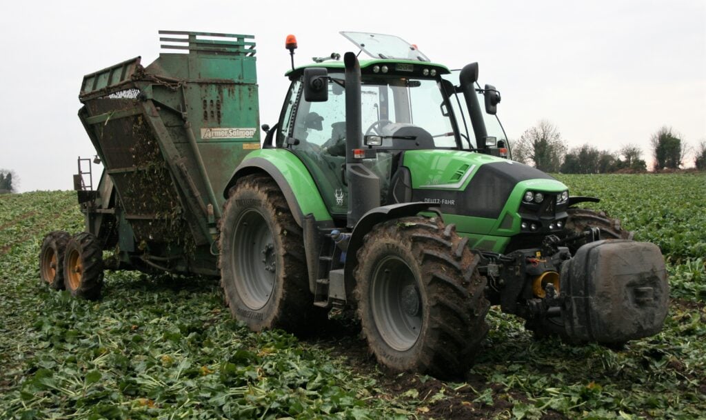 Robert explained: “We’re here pulling beet with a single-row [harvester] – pulled by a Deutz-Fahr Agrotron 150. There’s also a twin-row harvester – an Armer Salmon as well – pulled by a [Deutz-Fahr] 6210.