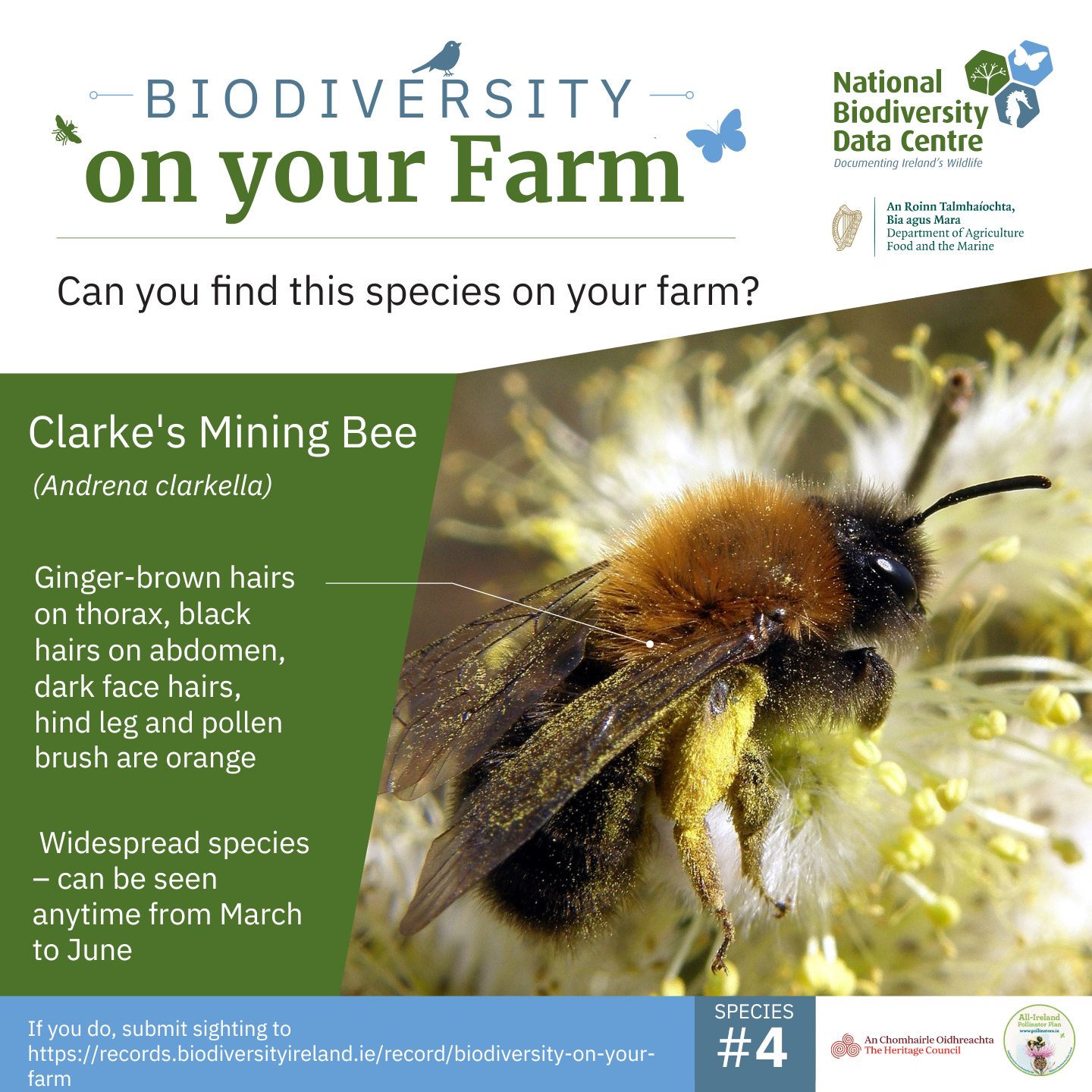 To date, farmers have been asked to see if they can detect the early bumblee, Marsham's nomad bee, Clarke's mining bee and the grey (or ashy) mining bee on their holding.