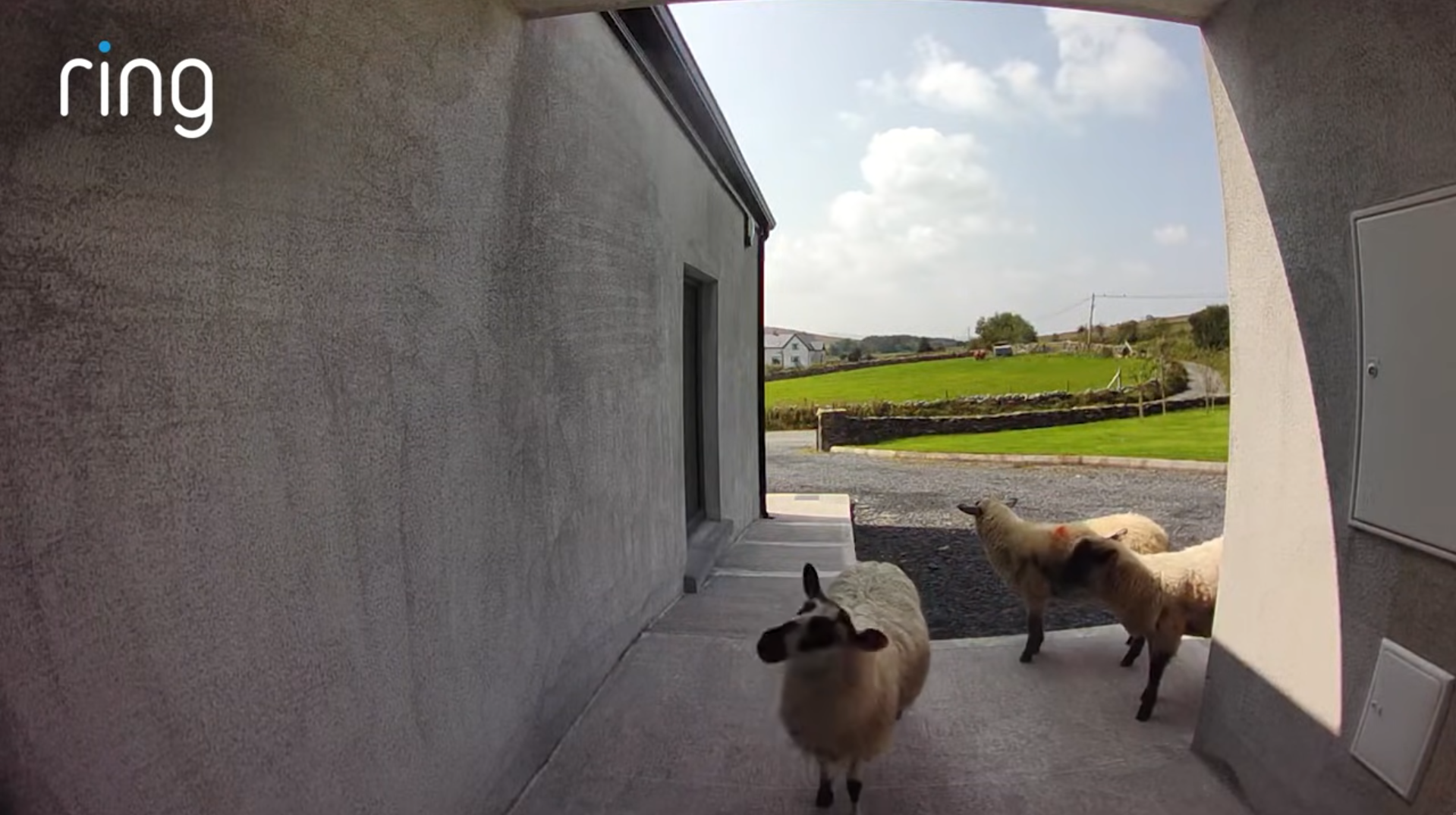 Through the doorbell's motion detection, Irish homeowners are alerted to any activity at their door - whether it's a delivery, a visitor, or in this case, a flock of sheep - even when they're thousands of miles away