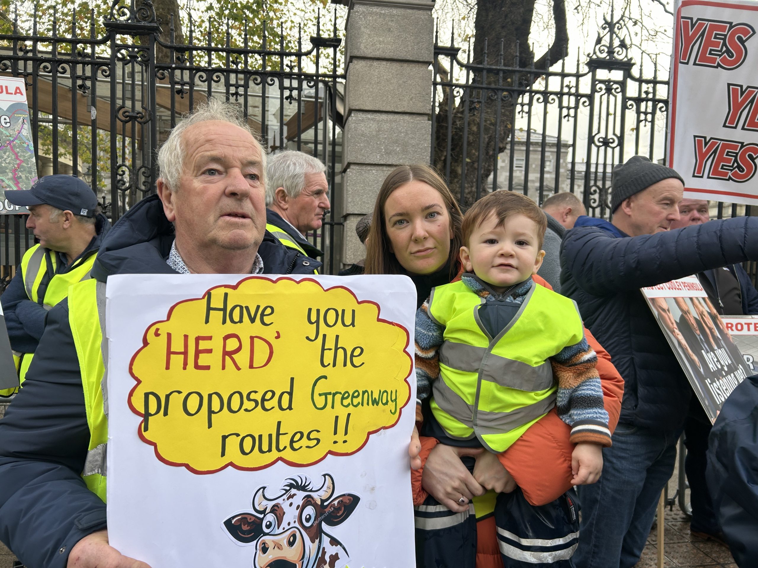 Young farmers took a day off school and college, babies were held in arms and farmers with many years behind them united outside the gates of Leinster House to voice their worries about the future of their land and the development of greenways.