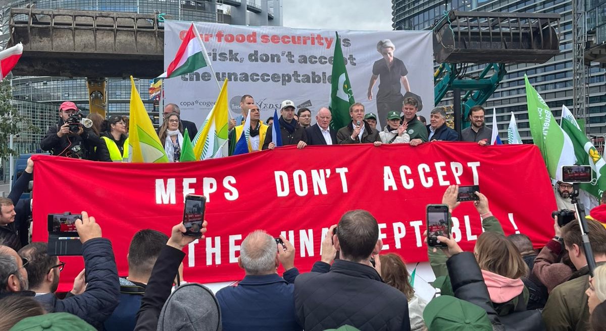 The farmers gathered in Strasbourg this morning are urging MEPs to not "accept the unacceptable".