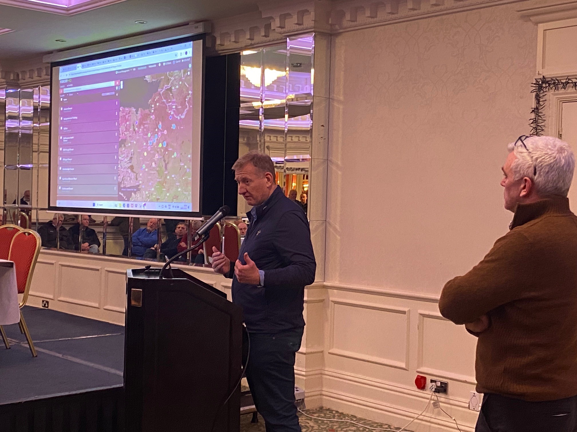 Among the speakers at the meeting were Enda Keane and Garett Mullooly from Cork company, TreeMetrics Ltd., who showed the audience the technology available to them which they used to determine that about 11,750ha are blown over.