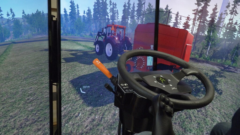 The simulator can even provide difficult driving conditions like lodged cereal crops and force the driver to adapt to their surroundings.