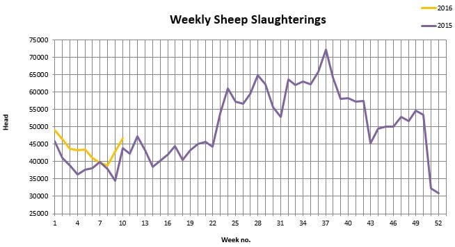 According to the Department, the number of cull ewe and ram slaughterings increased by almost 15% during the week ending March 13 on the week before.