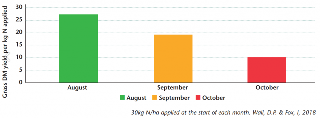 From the above figures, farmers can grow almost 1.5 times more grass when N is spread in August rather than September.