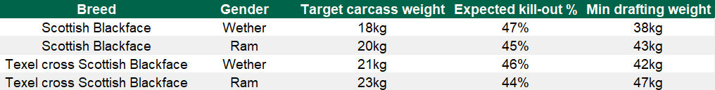 “Store lambs should be achieving gains of 220-330g/day. This is in respect of Texel crosses and hill breeds.
