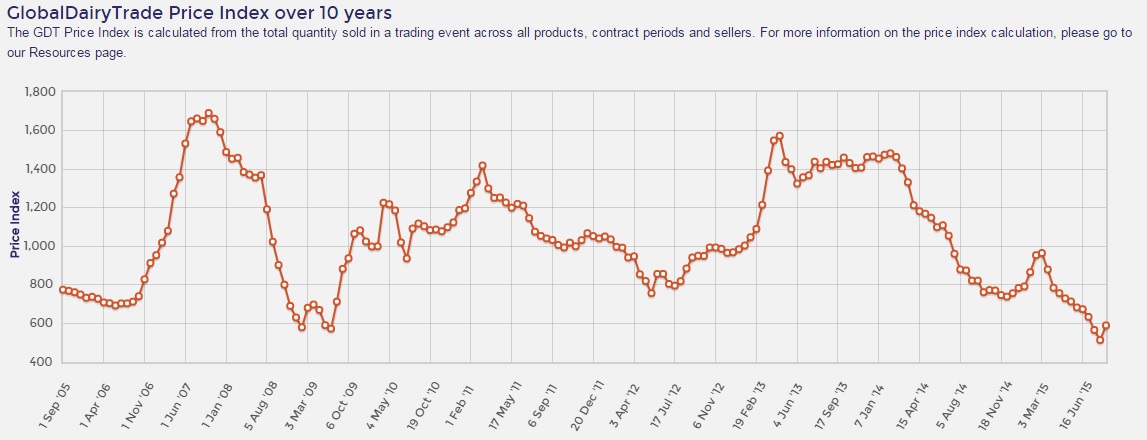 The event comes on the back of 10 negative auctions for prices in a row and with the GDT index now over 50% lower than the highs seen in February 2014.