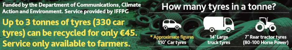 AgriLand is once again delighted to team up with the Irish Farm Film Producer’s Group Ltd (IFFPG) to provide farmers with details and locations of Bring Centres where farmers can dispose of unwanted tyres.