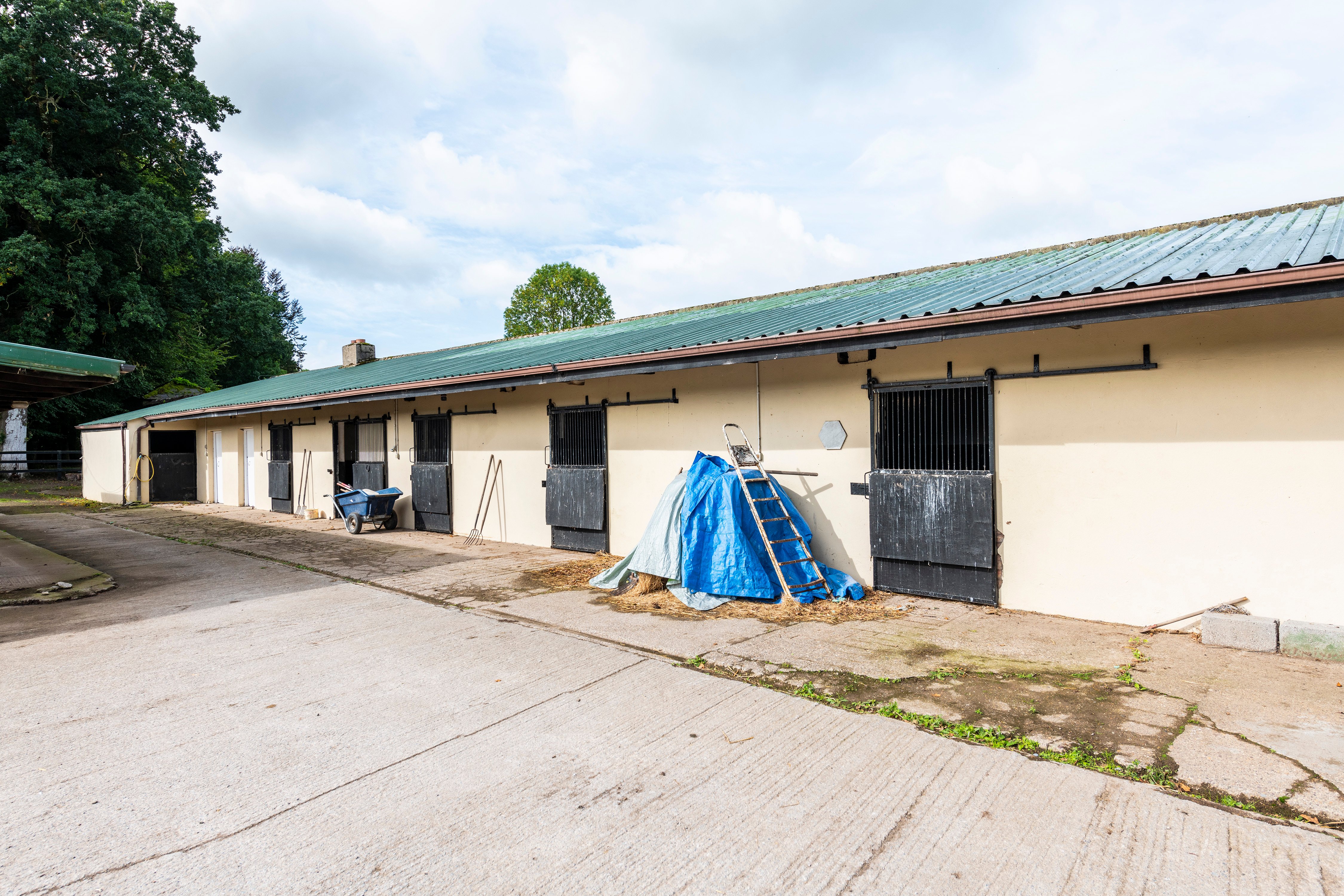It also incorporates four self-catering apartments; a gate lodge; outbuildings of 14 loose stable boxes; a tack room; and a haybarn with lean-to. There are 37ac of paddocks and 14ac of mature woodland.