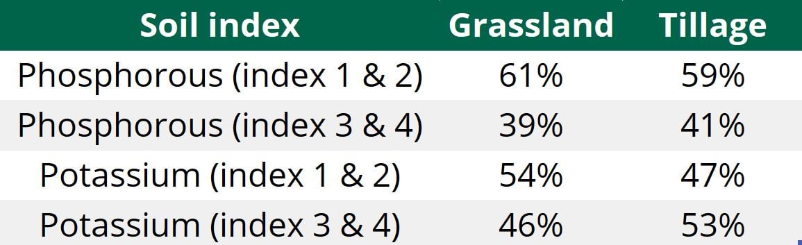 Over half of the tillage and grassland acreage in Ireland is either index 1 or 2 for P and K; this is worrying and needs to be addressed if farming is to remain sustainable.