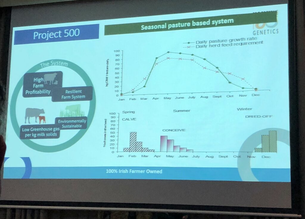 “The above graph [grass growth versus herd feed requirements] shows what we are trying to achieve in a grass-based system – matching the herd’s feed requirements to the grass growth curve.