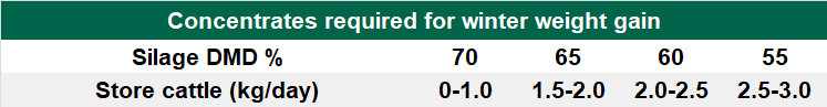 Similar to weanlings and finishing cattle, the level of concentrate supplementation for store cattle in winter depends on silage quality. However, the challenging weather conditions experienced in Ireland during the summer may have resulted in poorer-quality silage being made.
