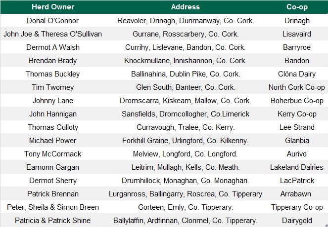 Judges from Bord Bia and Teagasc selected the nominees, with improvements in various areas, including animal performance, herd health and fertility, and control on inputs such as feed and fertiliser.
