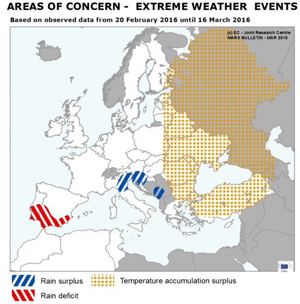 A similar situation is found in Slovenia, Croatia and Montenegro, where a significant rainfall surplus has been recorded since mid-January and winter crops are locally suffering from water logging; possible impacts will be visible in the coming weeks.