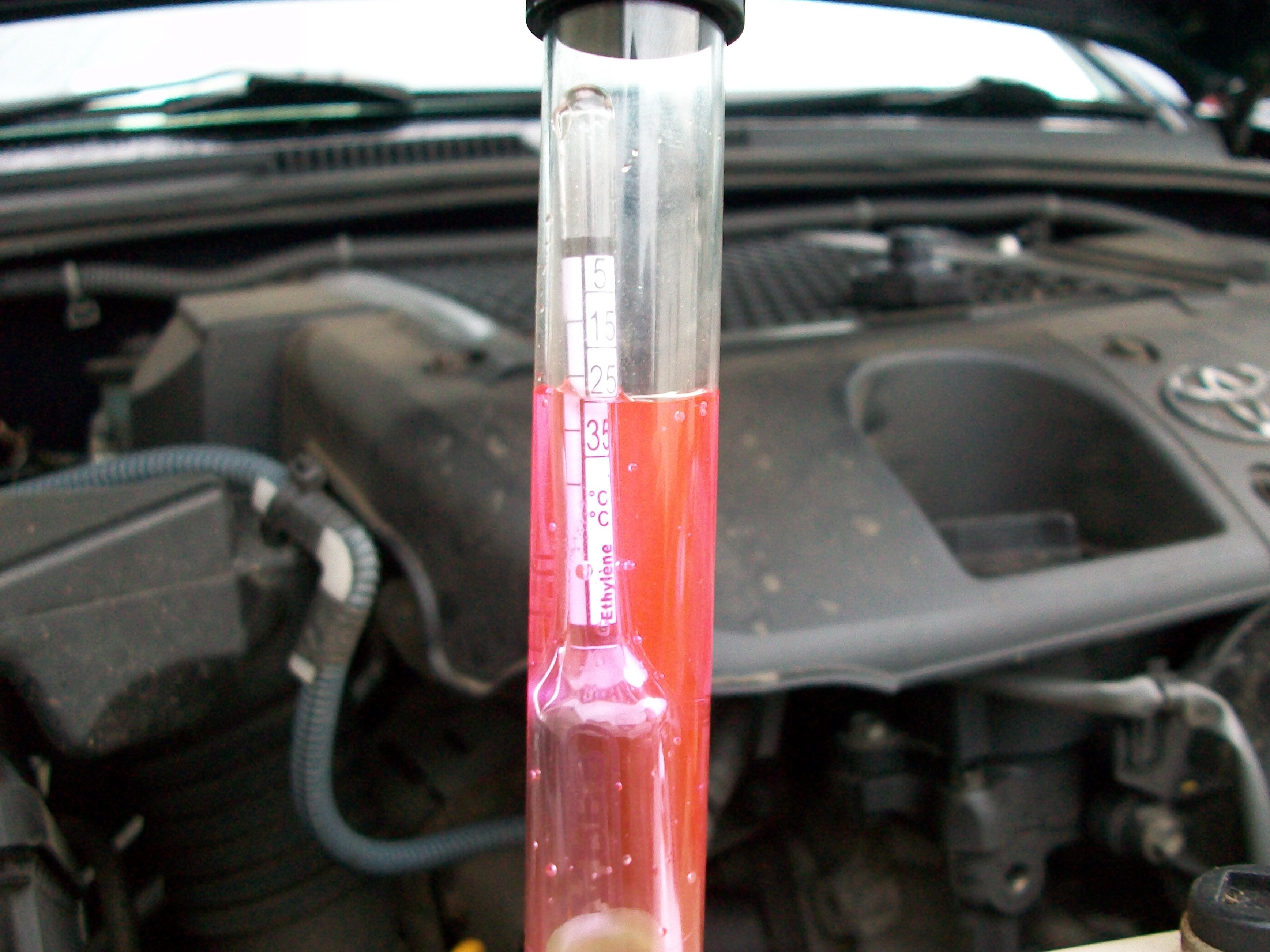 To check the condition (its protection level) of your antifreeze, a simple tester can be purchased cheaply (under €15) in most garages or motor factors.