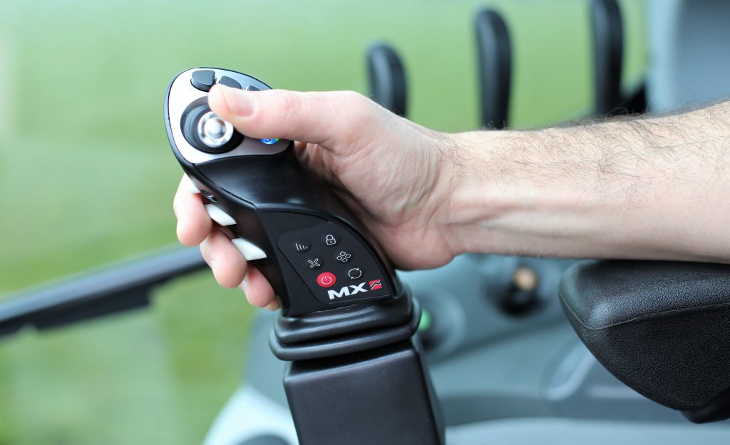 A waterproof, shock-resistant and electro-magnetically shielded module – fitted into the tractor’s dashboard – enables communication between the joystick handle and the MX’s hydraulic control valve. A BUSCAN cable linkage enables installation in the tractor cab.